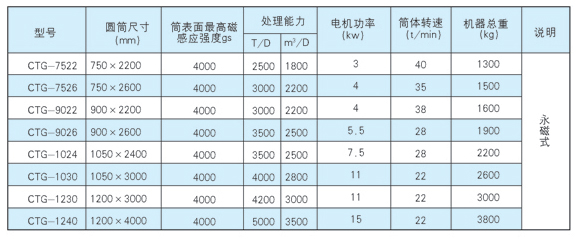 CTG series dry separation drum type magnetic separator is a kind of magnetic separation equipment designed for extraction of iron powder and powder powder of river sand. Can also design and produce a variety of dry separation equipment according to user needs.