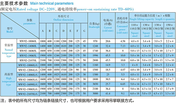 本系列電磁鐵的特點是:磁內(nèi)裝有活動吸塊,能根據(jù)被吸物的形狀進行伸縮調(diào)節(jié),限度地減小磁勢在氣隙上的損耗。適合吊運多根高低參差不齊的初軋坯、鋼坯、鋼管以及交錯排列的鋼錠。我公司通過特制設(shè)計,活動磁不容易卡死,壽命長。