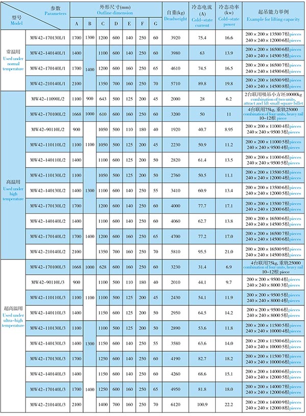 能在狹小的吸附面積內,產生較大的透磁深度,可在一定間隙的情況下起吊鋼材,是一種高吸力型起重電磁鐵。