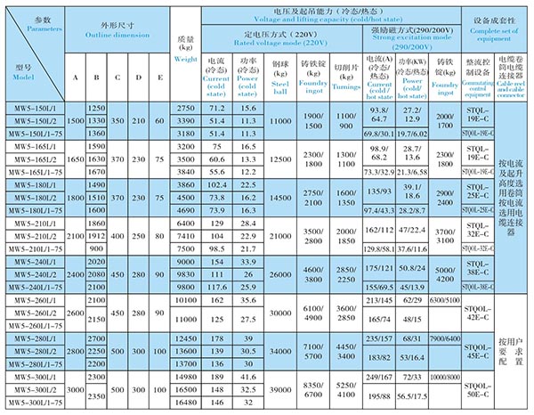 1、本系列用于吸吊鑄鐵錠、鋼球、生鐵礦、機加切削;鑄造廠的各種雜鐵、回爐料、切料頭;打包廢鋼等;在煉鋼爐渣處理工藝中,用于先期除去大型鐵件;在洗煤廠吊運鐵粉等。雙室式出線盒,特設超厚出線盒保護板,引出電纜防扭設置。 MW5系列起重電磁鐵有標準型、高溫型和高頻型。