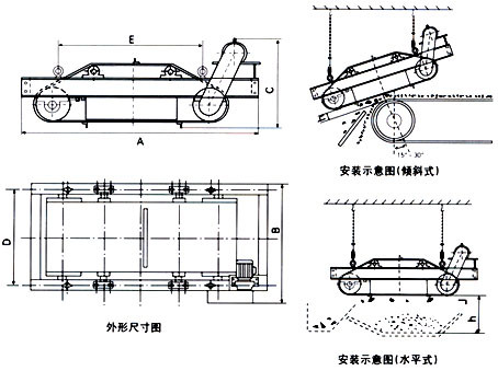 RCDC系列風(fēng)冷自缷式電磁除鐵器安裝示意圖: